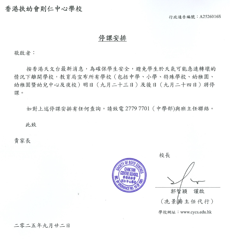 停課安排(中學部)