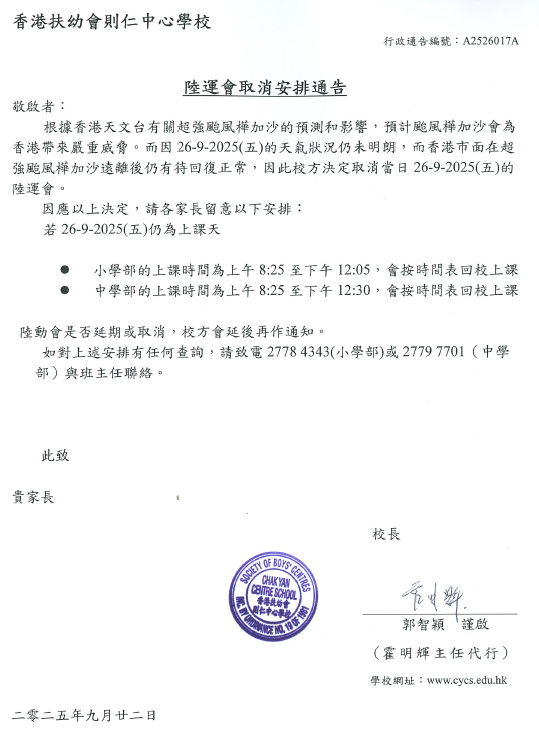 陸運會取消安排
